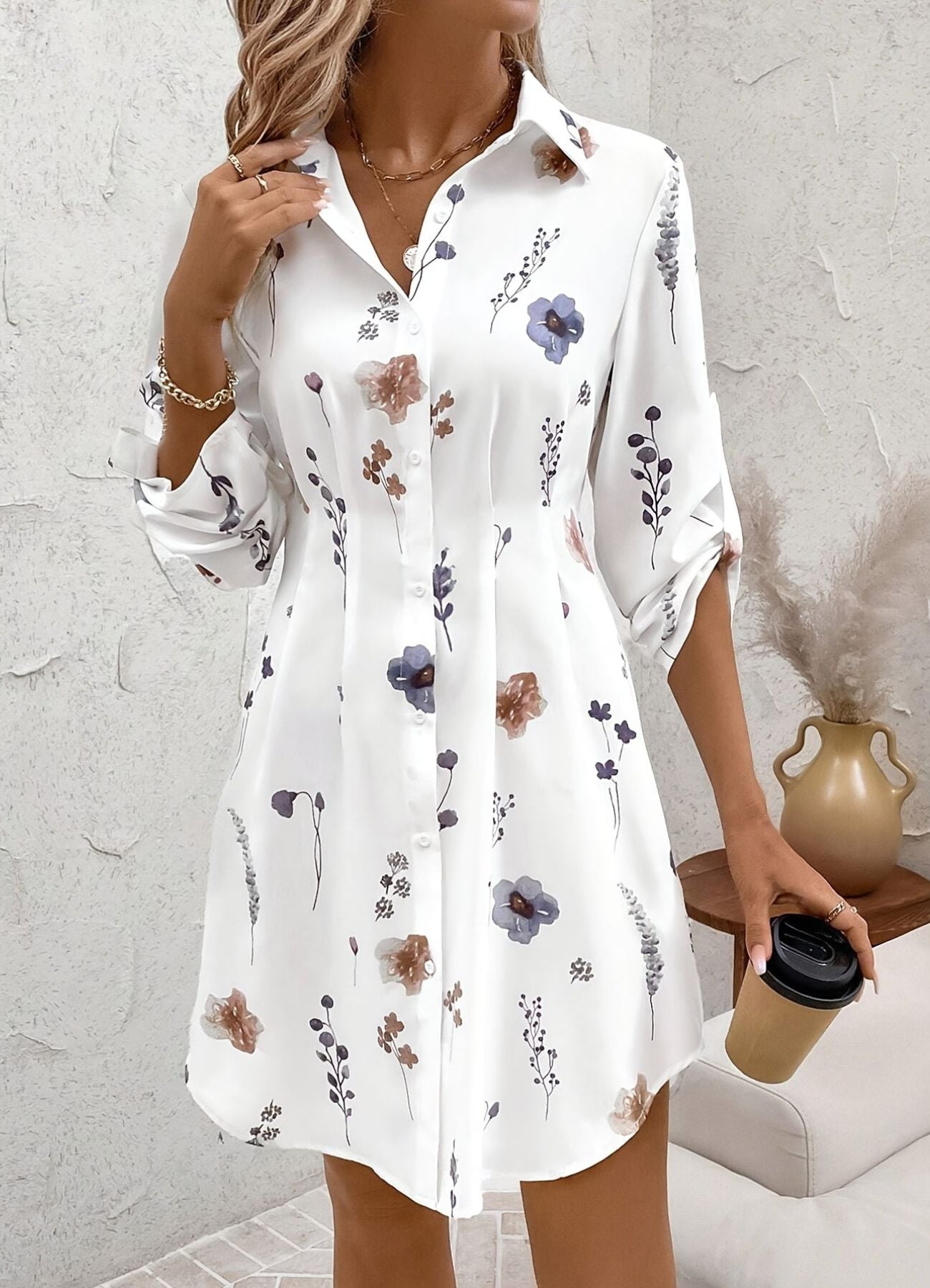 Rebekka™ – Elegant blomstrete skjortekjole med knapper